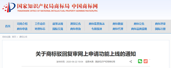 根据商标便利化改革的总体部署,为提升商标公共服务水平,更好地服务商标申请人,经前期广泛试用和开发完善,自2020年6月28日起,商标驳回复审网上申请功能正式上线运行。