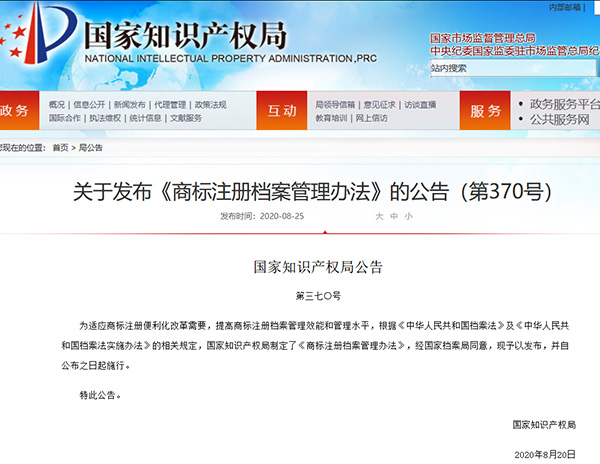 近日,国家知识产权局发布关于《商标注册档案管理办法》的公告。为适应商标注册便利化改革需要,提高商标注册档案管理效能和管理水平,根据《中华人民共和国档案法》及《中华人民共和国档案法实施办法》的相关规定,国家知识产权局制定了《商标注册档案管理办法》,经国家档案局同意,现予以发布,并自公布之日起施行。